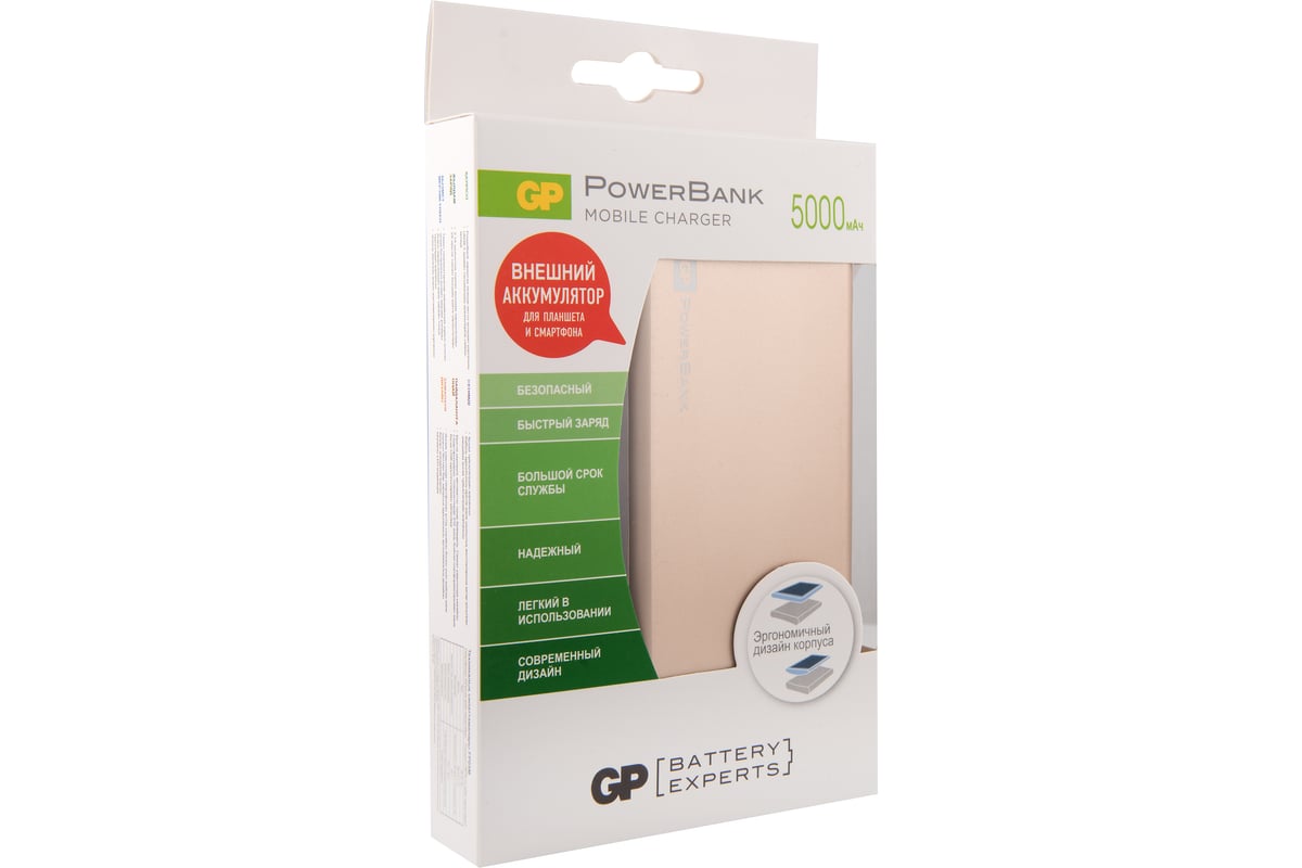 Расходные материалы для внешнего аккумулятора GP емкостью 5200 мАч, золотой, в алюминиевом корпусе FP05MGE-2CRB1