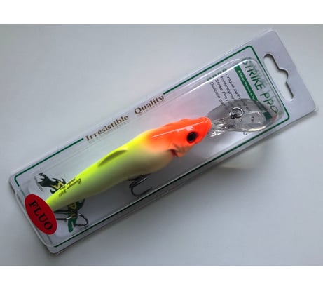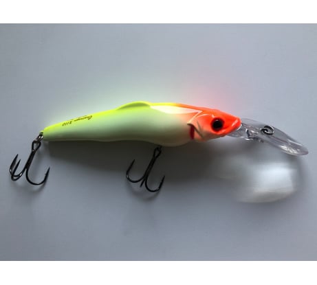 Увесистый, реалистичный и очень аккуратно изготовленный воблер. Оснащен двумя большими и острыми тройниками. Стабильно выдерживает указанную глубину. Соответствует всем заявленным характеристикам. Как бонус — флуоресцентное покрытие. Воблер светится на глубине и в мутной воде, куда с трудом проникает солнечный свет, но пробивает ультрафиолет.