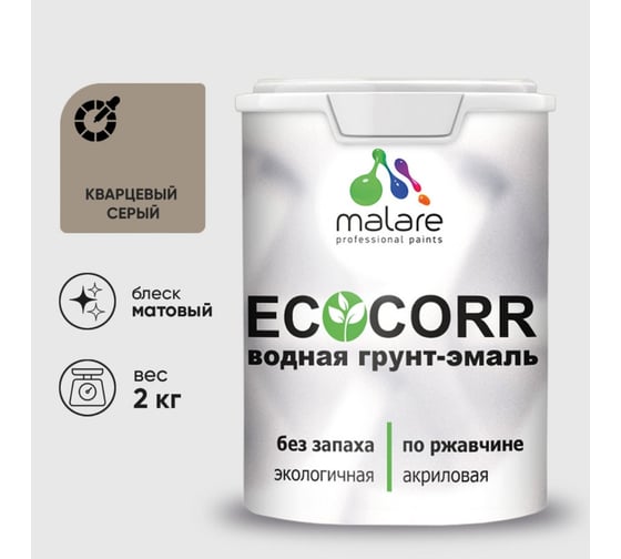 Грунт-Эмаль 3в1 MALARE акриловая быстросохнущая без запаха матовая кварцевый серый 2 кг 2036773884736