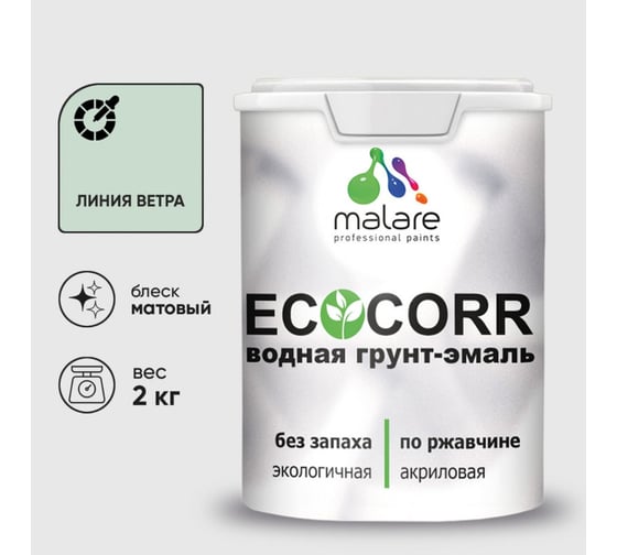 Грунт-Эмаль 3в1 акриловая быстросохнущая без запаха матовая для металлических поверхностей MALARE EcoCorr линия ветра 2 кг 2036773884644