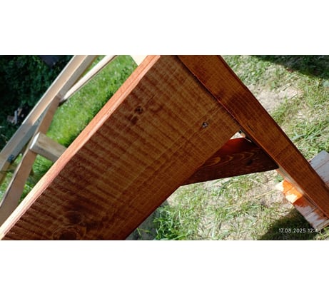 Хорошоая морилка, 0,5 хватило на 2 слоя внешней части каркаса кровати. На фото где светлее 1 слой где темнее 2