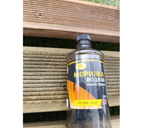 Непредсказуемый цвет и качество. То коричневая морилка (давно не было), то болотно-зеленая, то красная, то розово-оранжевая. Бывает полупрозрачная, бывает насыщенный цвет. Но, смешивая красную и зелёную морилку, можно получить красивый коричневый цвет) на фото пробы морилки Палисандр из разных партий. Специально стала на одной деревяшке пробовать.