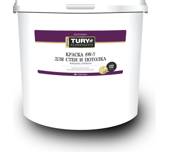 Краска TURY в/д SW-7 моющаяся супербелая, 4 кг 2008500