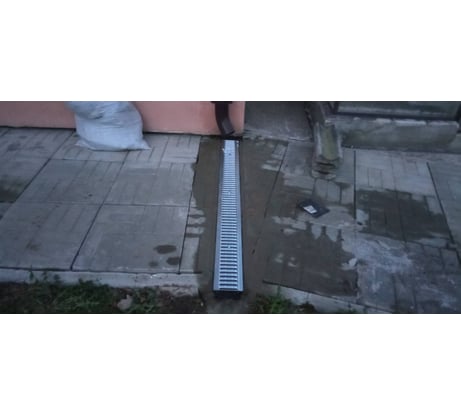 Время покажет насколько этот пластик крепкий. Если устанавливать "как есть", то решетка будет на 2 см ниже уровня дорожки. Чтобы решетка была в уровень (как на фото), бортик надо срезать (разметка есть). Заглушка на защёлках (дополнительно промазал битумным герметиком). Между собой лотки не фиксируются, просто встык.