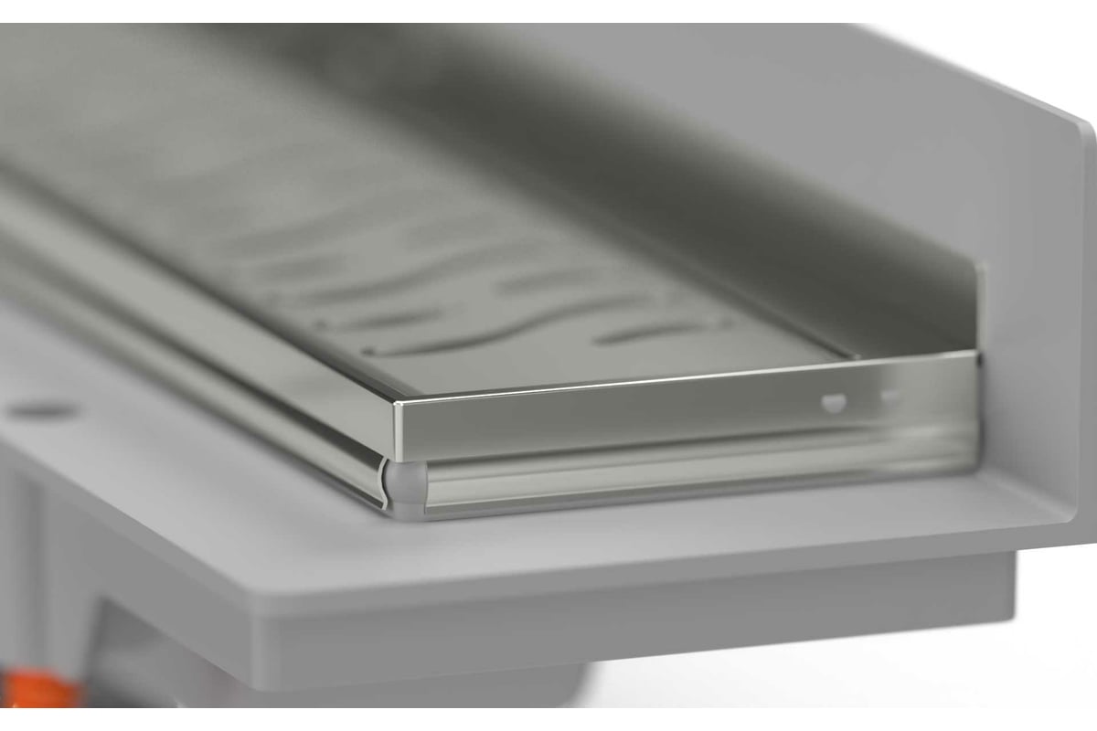 Он изготовлен в соответствии с EN 1253, имеет уникальную противозапаховую систему, низкую монтажную высоту, высокую пропускную способность, широкую линейку решеток из нержавеющей стали.