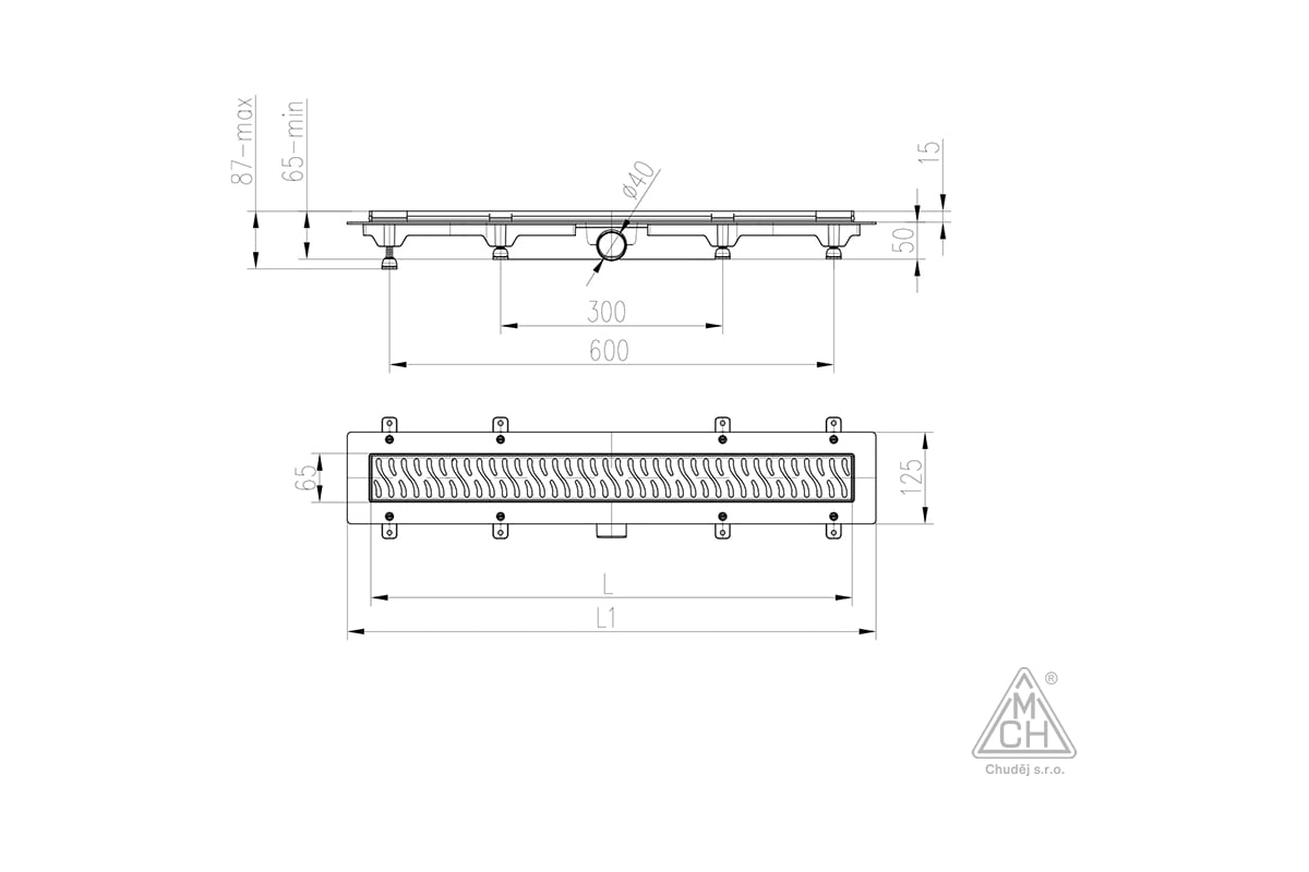 Технические характеристики MCH Chudej с боковым сливом d40 MCH рамка нерж. 350 мм G SQUARE
