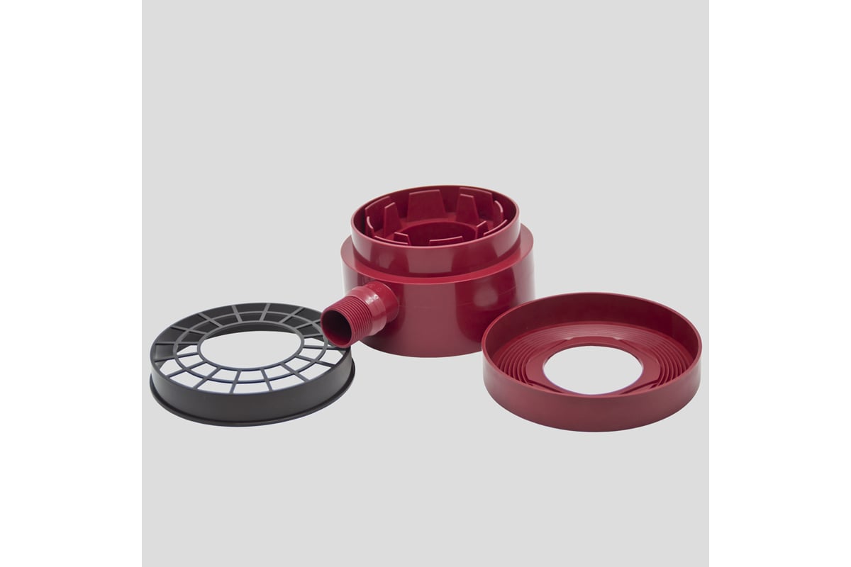 Водосборник дождевой воды красный RDU-R может использоваться с трубами из пластика и металла любого профиля. Приспособление собирает дождевую воду в установленные емкости. Корпус изготовлен из пластика красного цвета. Простая установка осуществляется без демонтажа труб.