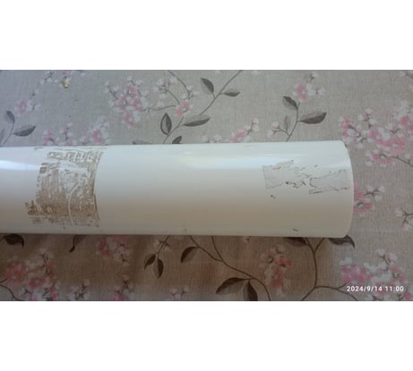 Труба облеплена скотчем и на нее наклеен ОГРОМНЫЙ складской ярлык, отодрать который, не повредив поверхность трубы, невозможно никакими способами. Смотрите фото.