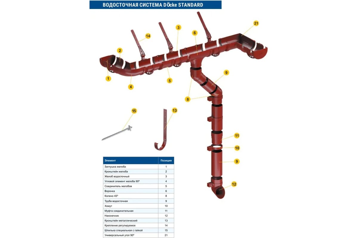 Водосточная труба Docke STANDARD 80 мм х 2 м., темно-коричневый PVTR-1023