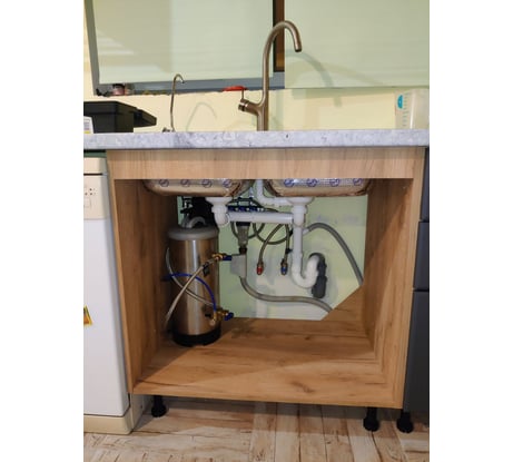На даче в скважине очень жёсткая вода. Беда бедовская с бытовой техникой в части образования накипи и осадка в чайнике... Купил 2 штуки по 12 литров. Одну в дом, вторую в баню. Отлично справляются со своей работой! За сезон 2 раза регенерировал смолу. Ничего сложного. На родные краны с 3/8 дюйма сделал переход на американку 1/ 2 дюйма. Т.е. монтаж демонтаж сейчас дело 2 минут. На зиму снимаю и убираю в погреб. Все супер!