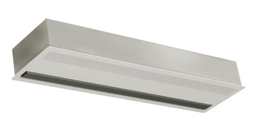 - Завеса устанавливается горизонтально за подвесной потолок, видимой остается только нижняя часть прибора с решетками забора/выдува воздуха.