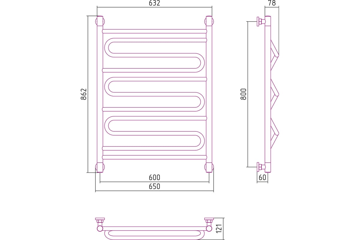 Водяной полотенцесушитель Сунержа ДР "ЭЛЕГИЯ+" 800x600 00-0205-8060 предназначен для сушки текстильных изделий, а также обогрева ванных и душевых комнат.