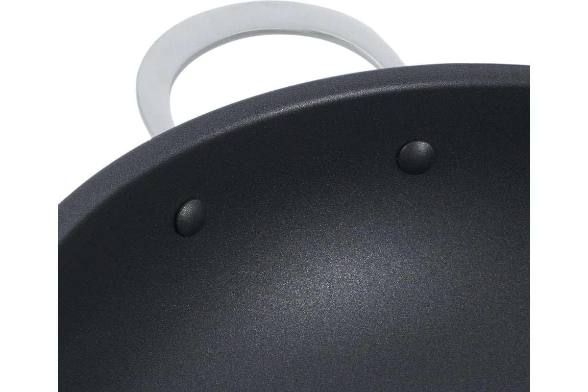 Стальной вок быстро нагревается и отлично подходит для быстрой обжарки продуктов в масле. Ручки стальные, способ крепления - клепочный. В комплекте крышка из закаленного стекла. Вок выполнен в классическом дизайне. Прекрасно смотрится и на кухне, и при подаче на стол.