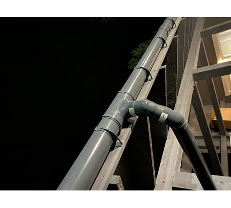 Обратите внимание, труба сразу в воронку не заходит. Нужен либо переходник, либо сразу угол ставить.