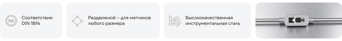 Благодаря стабильной фиксации инструмент гарантирует комфортную работу. Применяется для нарезания внутренней резьбы с помощью метчика.