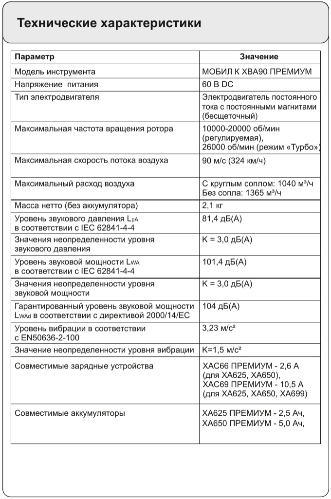 Совместимые аккумуляторы: XA625 ПРЕМИУМ – 2,5 Ач, XA650 ПРЕМИУМ – 5 Ач, XA699 ПРЕМИУМ – 10 Ач.