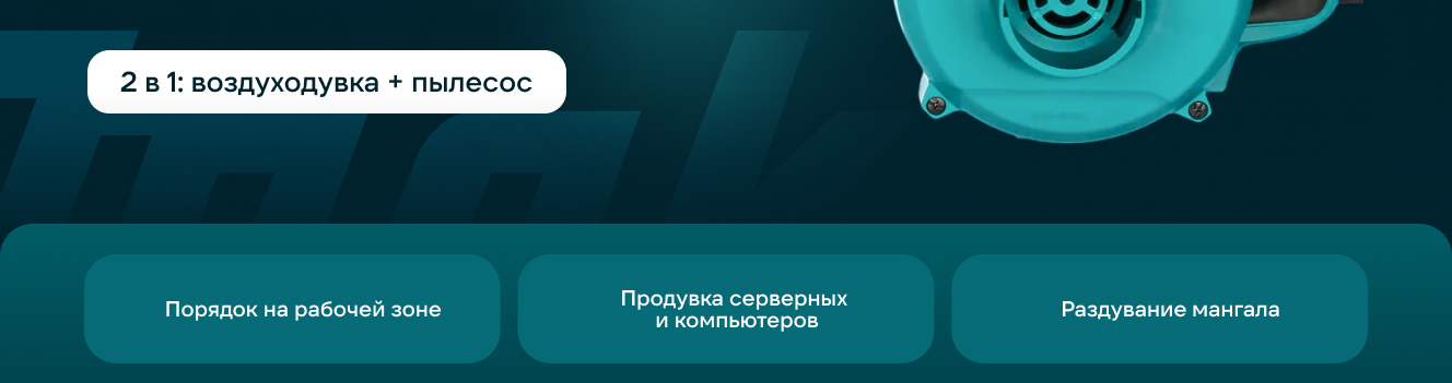 Отличный помощник дома, в гараже и в саду. Листву, свежевыпавший снег выдувает на ура! В гараже убрать пыль, стружки. В саду листву! Мощности хватает! Был до этого DEKO с большей заявленной мощностью, так вот Makita в 2 раза по ощущениям мощнее. Часто использую для продувки системного блока, компрессора и радиатора на холодильнике. Покупкой доволен на все 💯