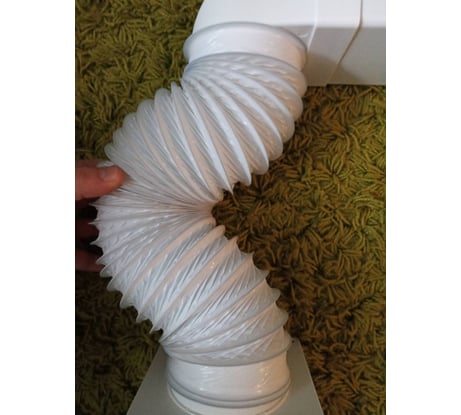 Данный воздуховод купил для отвода потока воздуха от вентилятора из ванной в вент-шахту (сантех-кабина, по замыслу строителей поток воздуха выбрасывался по дефолту в... туалет, а до вент-шахты "самотоком").