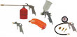 Комплект Air Master В комплект поставки входят: пистолет с манометром для накачки шин, краскораспылитель с верхним бачком на 0,5 л, пневмопистолет с бачком для вязких жидкостей, комплект из трёх наконечников, пневмопистолет для продувки и гибкий спиральный резиновый шланг длиной 5 м с быстроразъёмными соединениями. |