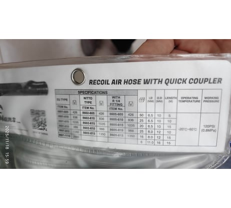 Качественный шланг от фирмы с Репутацией. Особенно понравились фитинги с большой пропускной способностью. Легко защелкиваются и разъединяются. Сам шланг из полиуретана - не армирован, из-за чего он более гибкий, чем с армированием нитью. Легко растягивается до 4 метров при комнатной температуре прибл. +20град. далее уже с небольшим усилием. Но неармированный шланг держит меньше рабочее давление (этот 8 атм. рабочее давление), но зато и не дубовый. На шланге нанесена маркировка.