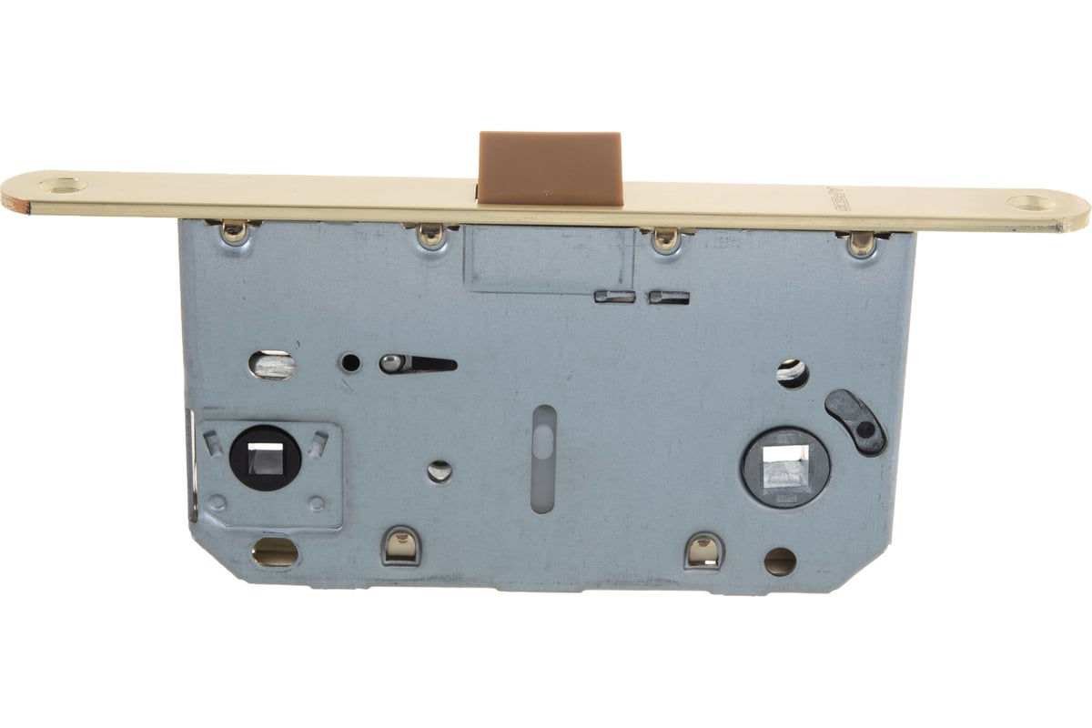 Форма лицевой и ответной планок и качества крепежа в комплекте даёт возможность быстро установить защелку с помощью электроинструмента. Ответная планка с дополнительным элементом загиба убережёт наличники при соприкосновении с языком защелки закрывающейся двери от порчи и сохранит эстетичный внешний вид. Отверстие под квадрат ручки самого распространённого стандарта: 8*8 мм.