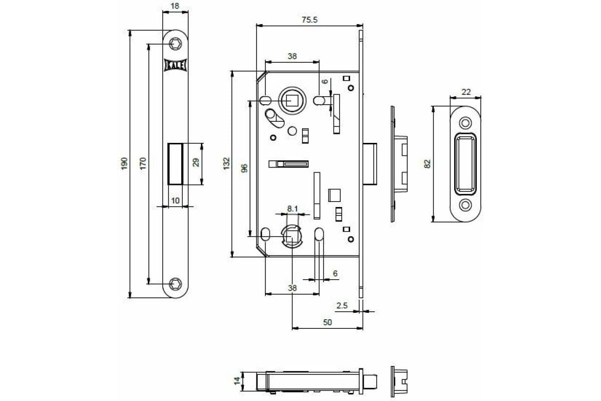 Врезной магнитный межкомнатный замок KALE KILIT 239 NN, WC, 90BS50, 18WA, MSP, STB 239NN000016