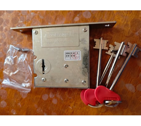 Вцелом замок хороший, но простоватый. Ригели ходят плавно, без заеданий. Комплект максимально простой: замок, 4 ключа, 2 крепежных винта. Вся инструкция напечатана на коробке, внутри никакой документации нет. Ответной планкой на дверную коробку и накладками на замочную скважину не комплектуется, поэтому придется приобретать отдельно, если понадобятся.