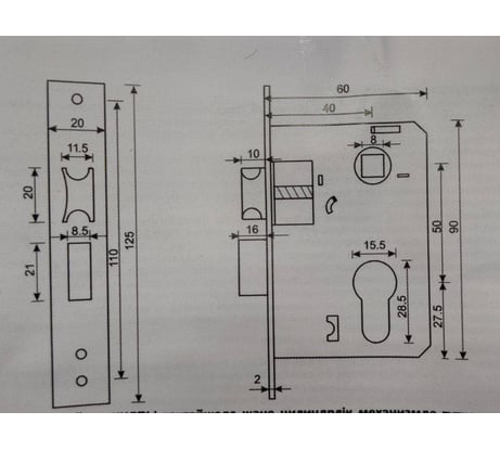 - Цилиндровый механизм секретности 60 мм. 1 шт.