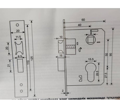 - Цилиндровый механизм секретности 60 мм. 1 шт.