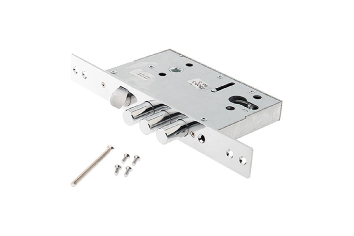 Замок врезной под евроцилиндр с защелкой и межосевым расстоянием 85 мм. Предназначен для установки на металлические двери, как левого, так и правого открывания. Конструкция замка предусматривает возможность установки броненакладки.