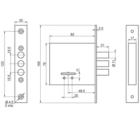 Данный замок подбирался и заказывался в соответствии с чертежом изделия из документации на продаваемый товар для замены аналогичного в уже имеющееся посадочное место в металлической двери. Пришел в полиэтиленовом пакетике в заявленной комплектации. Однако, при попытке установить выяснилось, что высота планки замка 140 мм вместо 150 мм заявленных, ширина планки планки 21 мм вместо 25 мм заявленных, а расстояние между центрами отверстий для крепления на планке замка составляет 118 мм вместо 123 мм заявленных. При этом, корпус замка также оказался толще своего предшественника на 4 мм, но данный размер на чертеже изделия вообще отсутствовал...