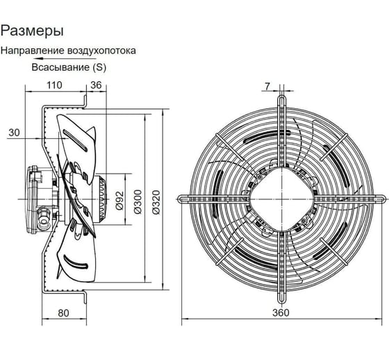 - Диаметр по крыльчатке 300 мм;