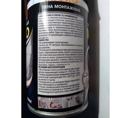 Несмотря на прежний опыт использования (см. отзыв от 21.11.2024г.) я недавно снова купил 2 баллончика этой «микро-пены», т.к. объем работ был очень небольшим, а выбор микро-баллончиков тут невелик. Один баллон не сработал, так же, как и в прошлый раз – опять щелчок при навинчивании трубочки (резьба на штоке проворачивает), и опять ничего, даже ни звука. А второй сработал, но очень резко, пена из него буквально вылетела с громким шипением. Мне требовалось запенить 2 небольших угла, внизу и вверху, как раз объема пены на них должно было хватить. Нижний запенился более-менее сносно, но когда я стал пенить верхний, под потолком, пена не держалась и отваливалась кусками. В итоге почти 2л пены оказались на полу. Когда пена в баллончике закончилась, он продолжал шипеть сам по себе, похоже, что газа в него накачали слишком много. Я работал при температуре +10*С, в помещении, все делал по инструкции. Баллоны хранились вертикально, не переохлаждались и не перегревались, дата выпуска – 14.06.2024г. (еще достаточно свежие). По поводу объема – он получился литров 10-12, и я не могу сказать, что это мало. Сегодня стал подрезать пену. На срезе увидел, что внутри она имеет желтоватый оттенок. На ощупь она грубая и жесткая, как щетка и менее упругая и плотная, чем те пены IRFIX MICRO и IRFIX MINI, с которыми я работал прежде (на срезе пена была белой, с мелкими равномерными порами, крепкая и упругая, но не грубая и жесткая с желтизной внутри). У меня нет больше доверия к бытовой монтажной пене данного производителя, придется искать альтернативу.