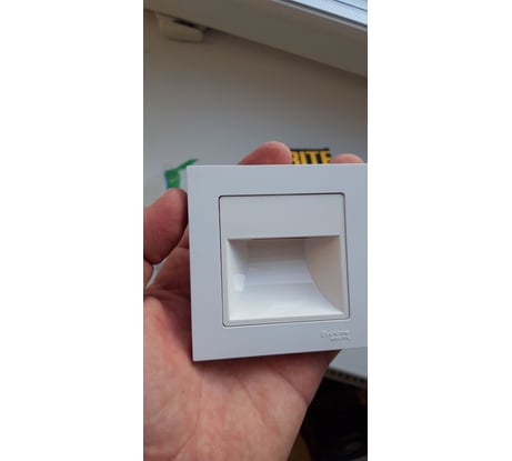 Хорошая подсветка, качественная. В качестве рамки использовал Atlas от System electric, подошло, разница в оттенке есть небольшая, но делаю для себя, мне не критично. Поставил в туалете над дверью как ночной свет, освещает хорошо, глаза не режет, на фото видно