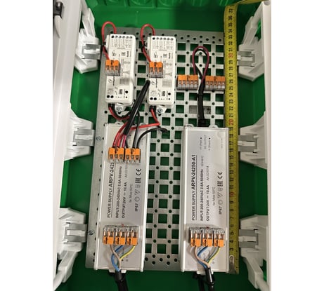 Собрал в него слаботочку в квартире. Модули становятся ровно, дверца закрывается плотно.