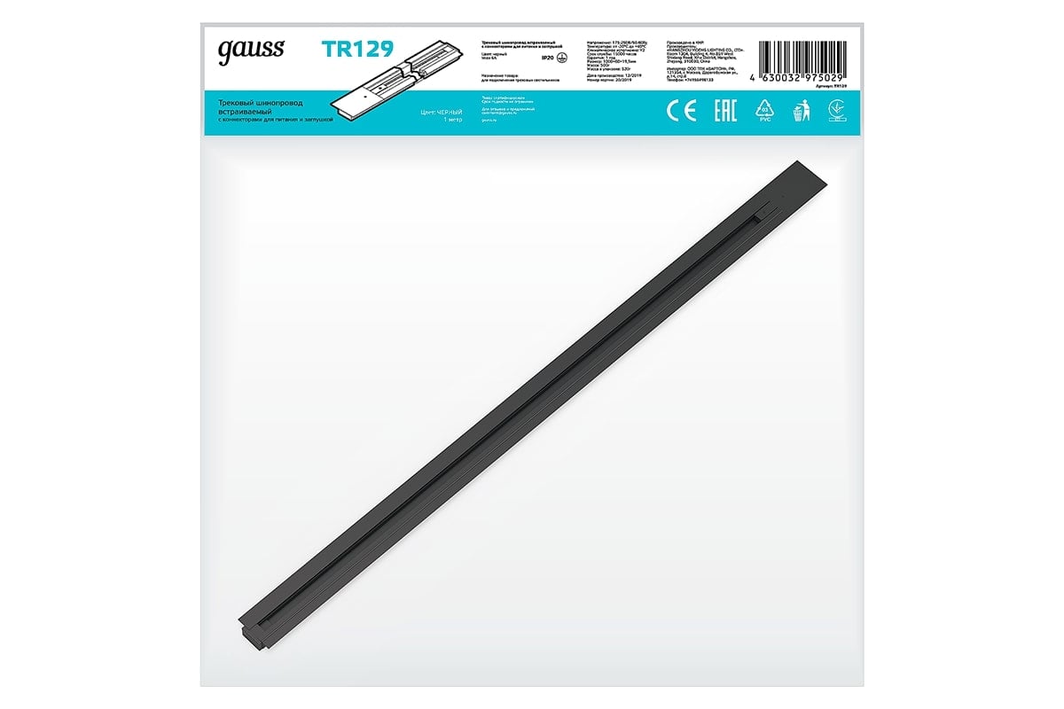 Встраиваемый шинопровод GAUSS 1м черный с адаптером питания и заглушкой 1/20 TR129