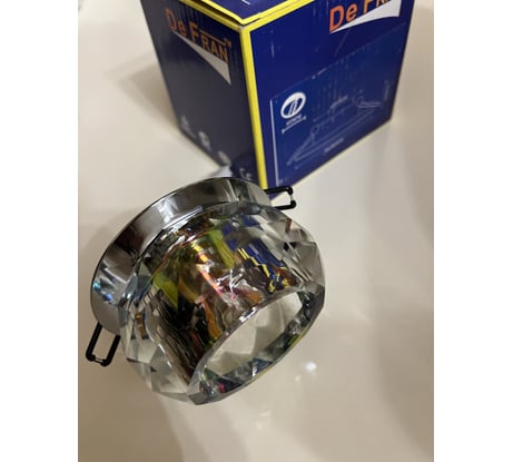 Встраиваемый светильник De Fran G9 серебро "радуга", FT 9260 r из декоративного стекла, подойдет в качестве основного, дополнительного и акцентного освещения в бытовых и коммерческих помещениях. Украсит любой интерьер. За счет преломления и отражения света создается интересный бликовый эффект на стенах и предметах интерьера.