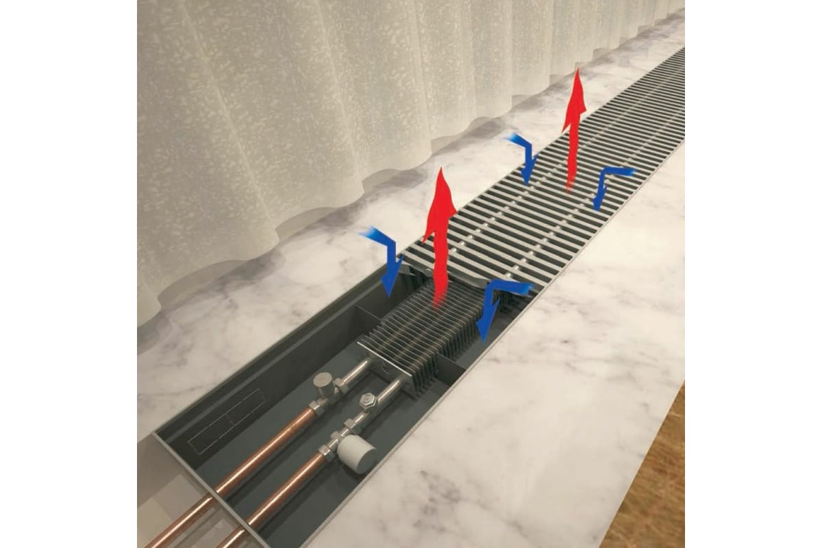 - Встраиваемый внутрипольный конвектор TECHNO Usual KVZ 200-85-2200 RH04001097 обладает естественной конвекцией.