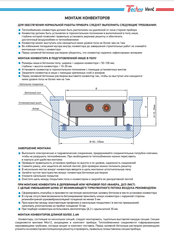 - Встраиваемый внутрипольный конвектор TECHNO Vent KVZV 250-85-3000 RH04001915 является конвектором с принудительной конвекцией.