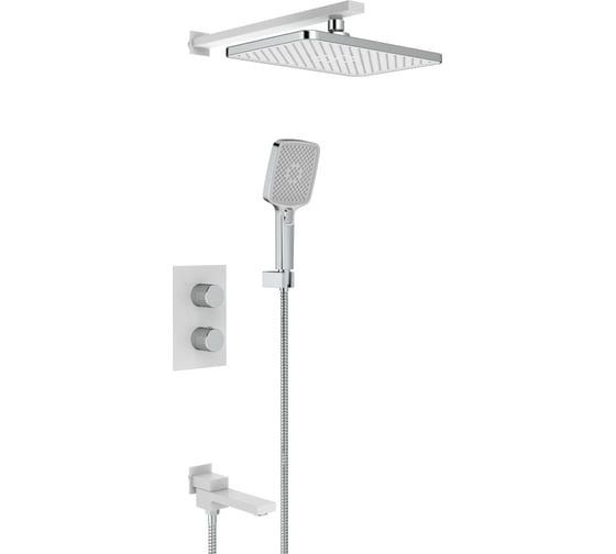 Встроенный термостатический смеситель для ванны на 3 функции с плоской панелью в белом цвете — решение для тех, кто ценит минимализм и комфорт. Скрытый монтаж позволяет освободить пространство и создать аккуратный современный интерьер, а продуманная конструкция обеспечивает удобное управление потоками воды и стабильную температуру.
