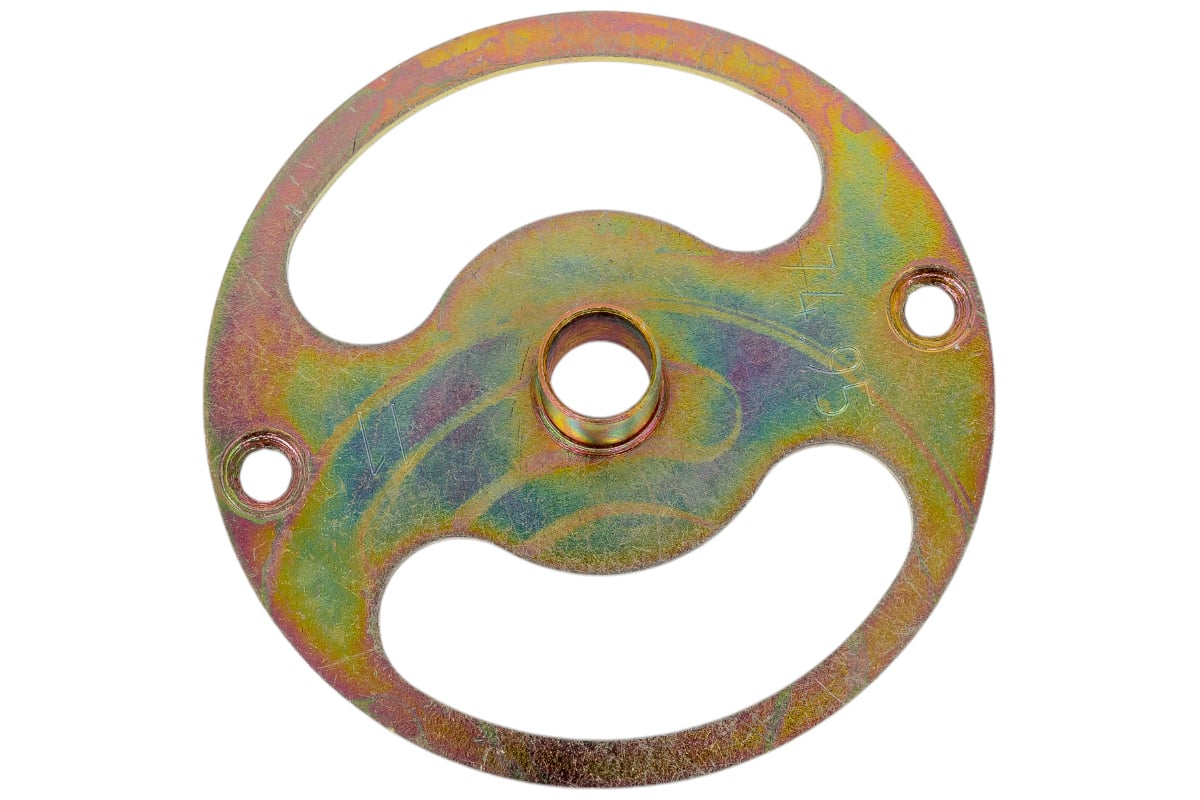 Крепится втулка для фрезера с помощью винтов (в комплект не входят) на подошве фрезерного аппарата. В процессе работы втулка защищает шаблон от режущего воздействия зубцов фрезы.
