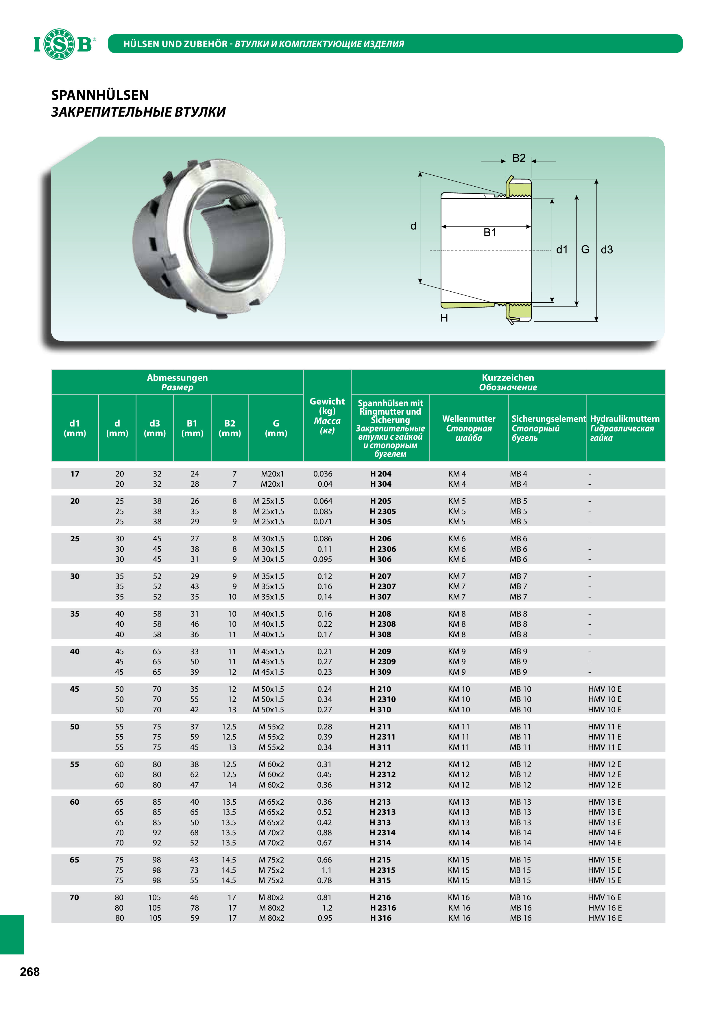 Технические характеристики втулки ISB H311