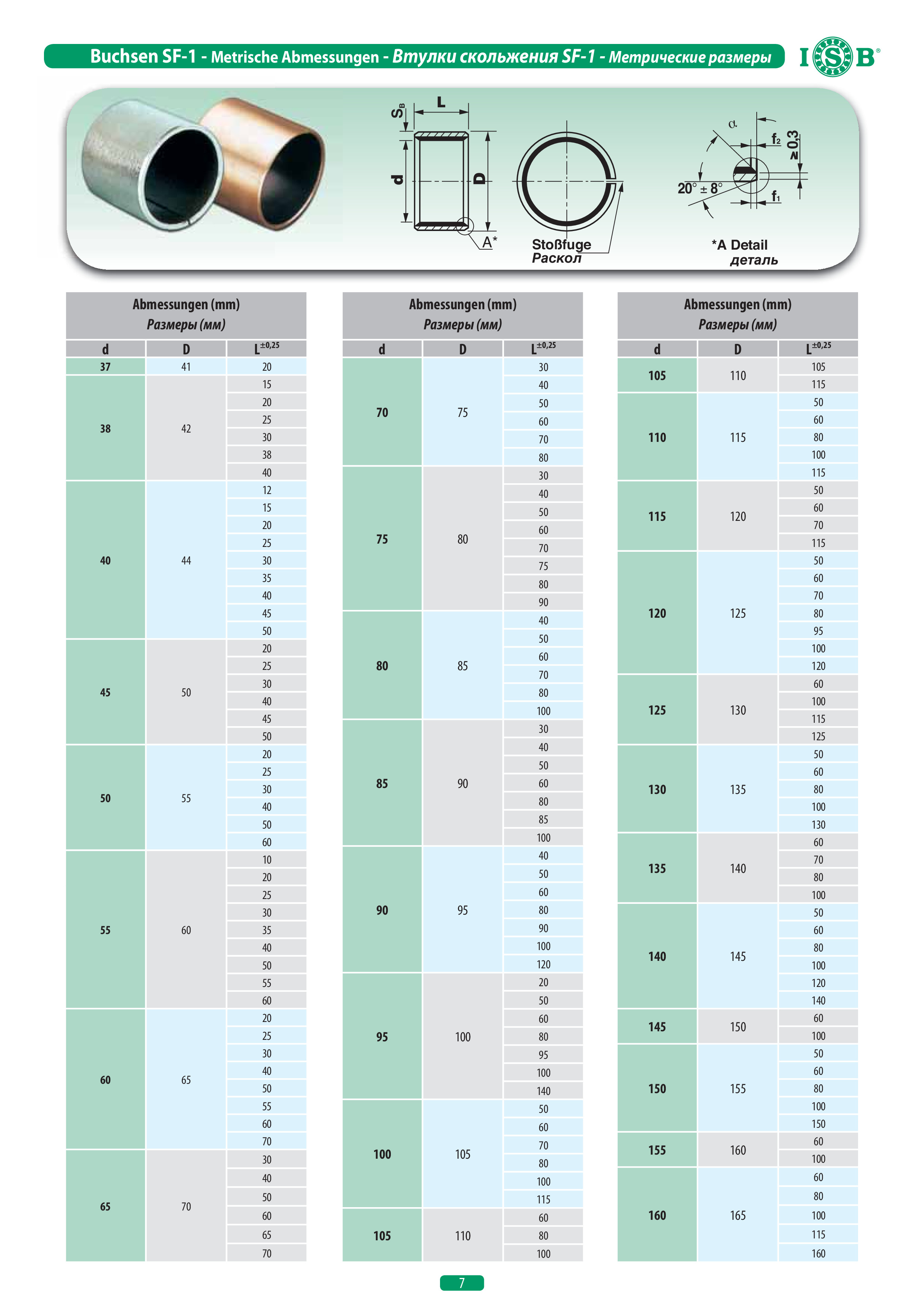Технические характеристики втулки скольжения ISB KU7040SF1SN