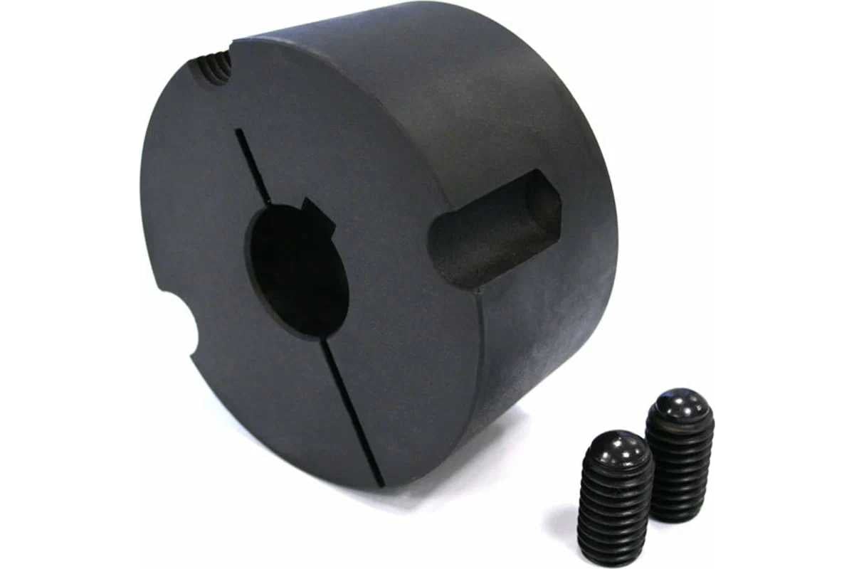 Втулка предназначена для быстрого и лёгкого монтажа и демонтажа элементов трансмиссионных механизмов без использования специального инструмента. Втулка представляет собой деталь с отверстием, разрезом, шпоночным пазом и крепежными резьбовыми отверстиями. Конструктивно конические втулки продуманы таким образом, чтобы использовать один и тот же шкив, муфту или звездочку на валах разного диаметра. Это объясняется тем, что втулка имеет коническую поверхность и при затяжке монтажными винтами деталь сажается на вал, на котором имеется шпоночный паз установленного размера, с его же помощью деталь прочно и надежно фиксируется. Внимание! Фото носит иллюстративный характер.