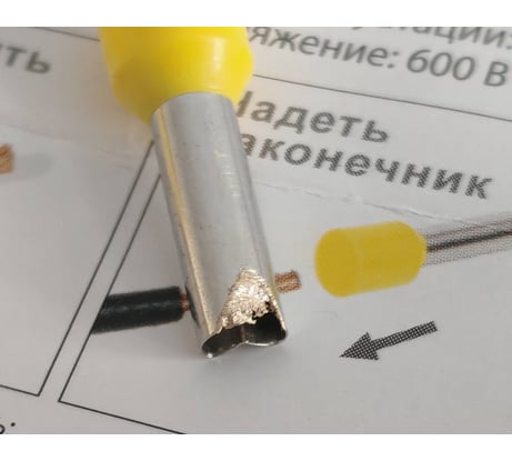 - Наконечник полностью заменяет обязательный процесс обслуживания многопроволочных медных проводов при монтаже различного электрооборудования.