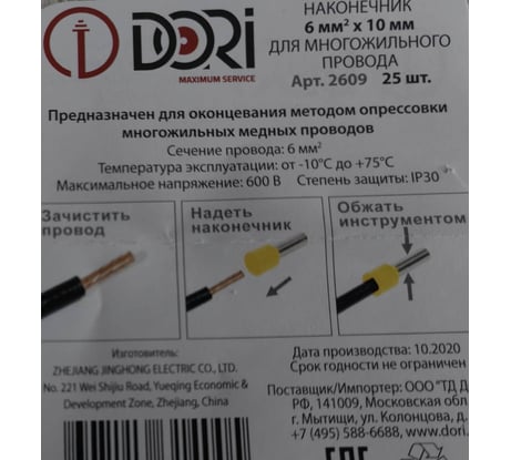 Вопросы и ответы о наконечнике DORI 6 мм2 2609