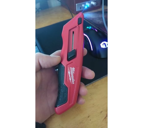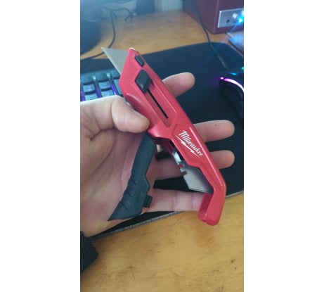 Не смотря на то, что мне очень нравятся ножи Milwaukee данный нож, к сожалению, мне не понравился от слова совсем. Первое, что неприятно удивило, что нож оказался старой ревизии без магнитного держателя лезвий, прорезиненных элементов на корпусе и стропореза. Однако решил на это закрыть глаза, т.к. меня больше интересовал форм-фактор ножа, люфт лезвия и механизм открывая. И если нож в руке лежит довольно уверенно, то вот люфт лезвия весьма существенный. У моего старого ножа КВТ, которого нещадно эксплуатировали 3 года, люфт сопоставимый! Про сравнение с моим основным ножом Milwaukee Fastback даже говорить не приходится. Главная же проблема с которой я столкнулся - это механизмом выдвижения лезвия. Лезвие легко выдвигается, но, к сожалению, очень туго возвращается в исходное положение. В итоге, работать таким ножом явно не получится, т.к. пальцы банально начинают болеть даже в перчатках после пару троек выдвижений/возвращений лезвия. Попробую поменять данный нож в магазине, т.к. если это не заводской брак, то нож не достоин даже 1-го балла из 5-ти.