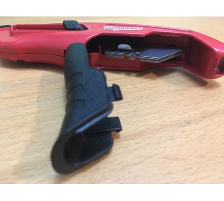 Существенный люфт лезвия! Нет магнитного держателя. Корпус не прорезинен. Нет запасных лезвий в комплекте! На идущем в комплекте лезвии отсутствует гравировка Milwaukee!