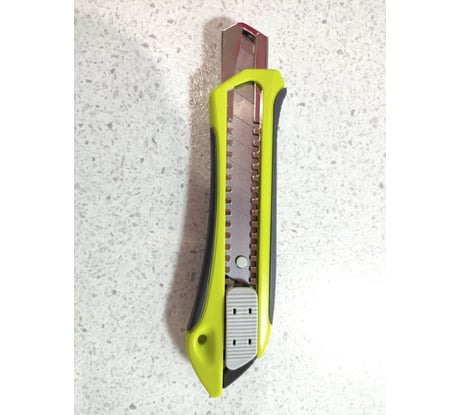 Лезвие легко выдвигается и фиксируется. Стальные направляющие обеспечивают увеличенную прочность изделия.