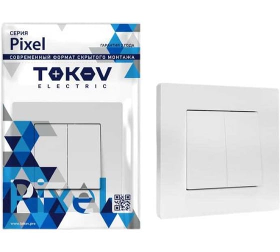 Выключатель 2-клавшиный TOKOV ELECTRIC СП Pixel 10А, IP20, в сборе, айс TKE-PX-V2F-C34